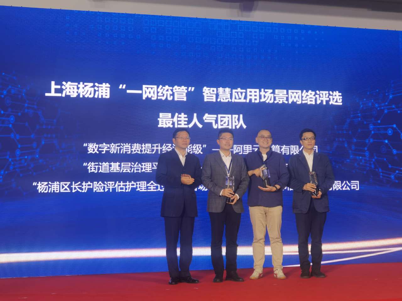 本次楊浦“一網(wǎng)統(tǒng)管”智慧應(yīng)用場(chǎng)景評(píng)選活動(dòng)共精選了8個(gè)應(yīng)用場(chǎng)景進(jìn)行網(wǎng)絡(luò)評(píng)選,涉及共享單車(chē)、智慧停車(chē)、數(shù)字經(jīng)濟(jì)、垃圾分類(lèi)、長(zhǎng)護(hù)險(xiǎn)監(jiān)管、街道基層治理、12345熱線、電梯運(yùn)維管理等城市治理領(lǐng)域。根據(jù)票選結(jié)果,楊浦區(qū)長(zhǎng)護(hù)險(xiǎn)評(píng)估護(hù)理全過(guò)程監(jiān)管場(chǎng)景名列前三,我司作為承建技術(shù)團(tuán)隊(duì)榮獲上海楊浦“一網(wǎng)統(tǒng)管”智慧應(yīng)用場(chǎng)景網(wǎng)絡(luò)評(píng)選“最佳人氣團(tuán)隊(duì)”獎(jiǎng),董事長(zhǎng)趙巍應(yīng)邀出席并代表公司上臺(tái)領(lǐng)獎(jiǎng)。