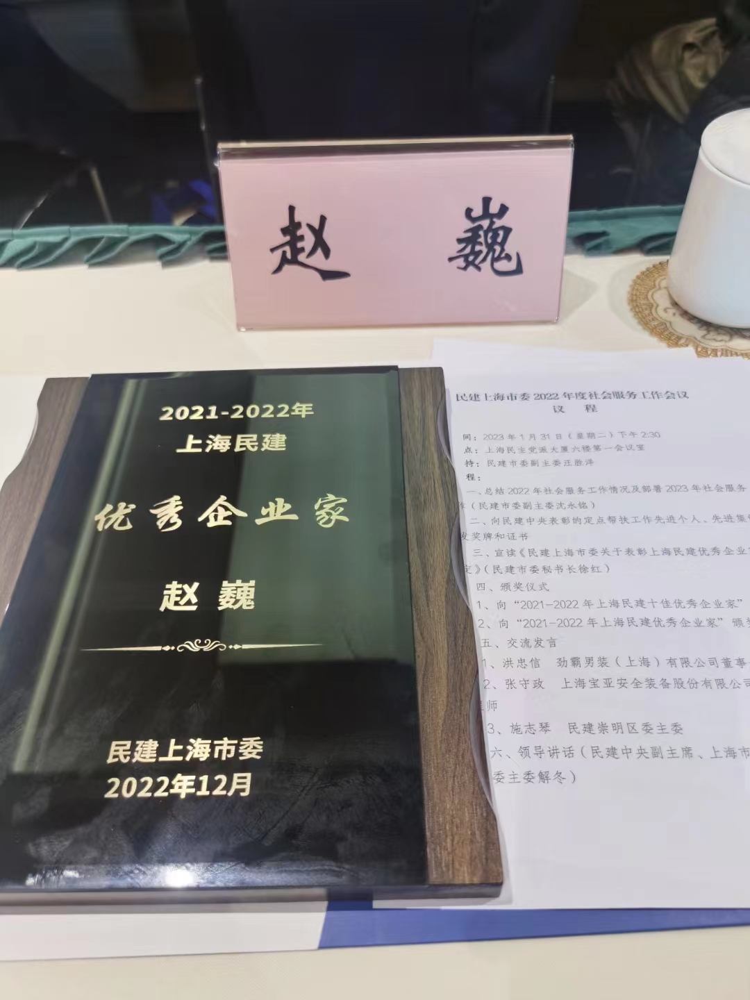 頒獎儀式現(xiàn)場,建朗科技董事長趙巍被授予“2021-2022年上海民建優(yōu)秀企業(yè)家”榮譽稱號。