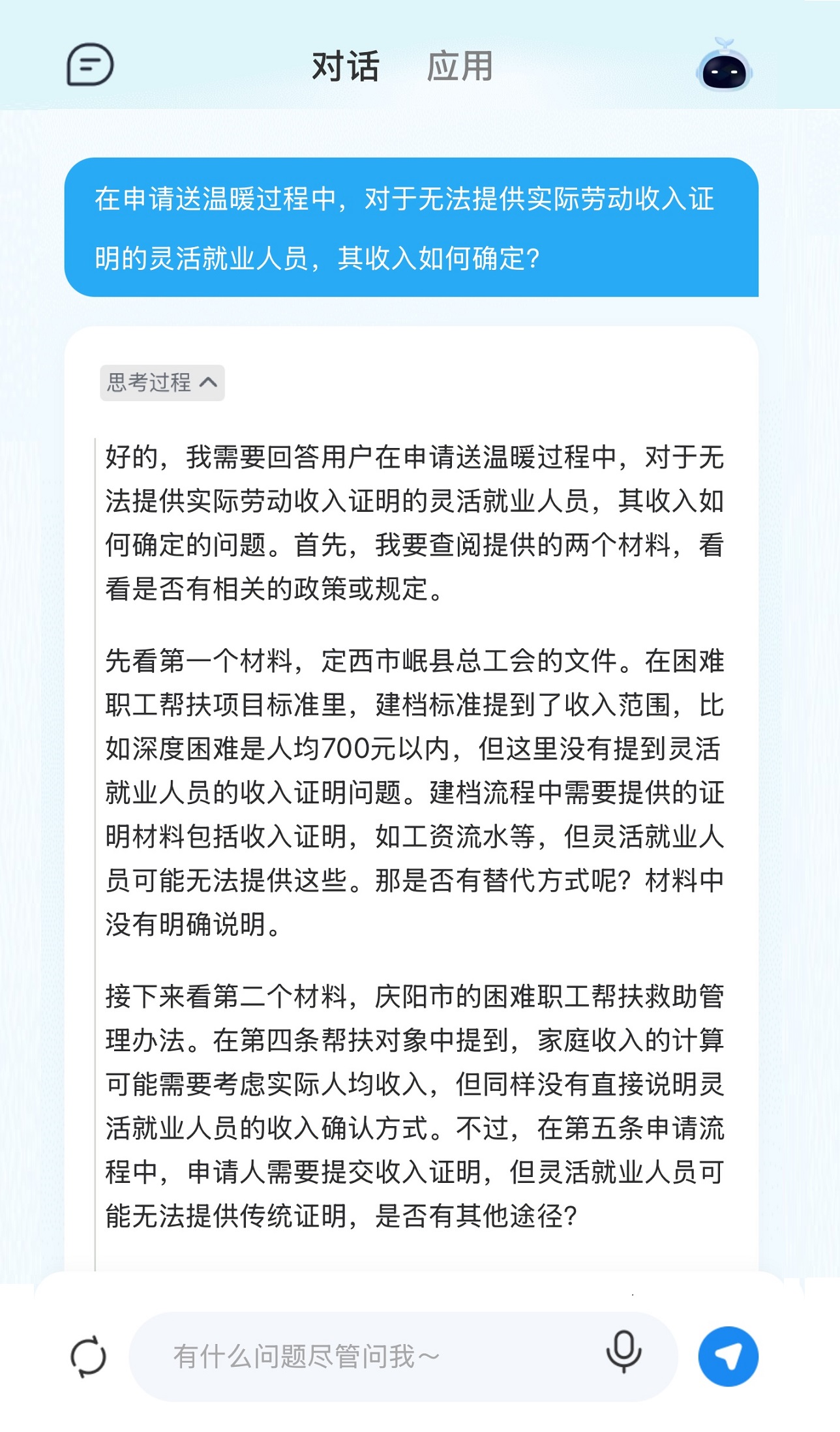 依托DeepSeek大模型的強大自然語言處理能力,AI助手能夠精準理解用戶意圖,快速解答職工關(guān)于政策法規(guī)、權(quán)益保障、福利待遇等方面的疑問,提供個性化、專業(yè)化的咨詢服務(wù)。