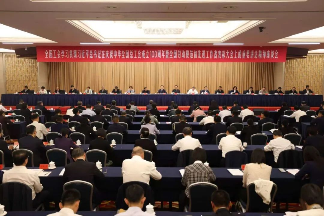 王東明在全國工會學習貫徹習近平總書記在慶祝中華全國總工會成立100周年暨全國勞動模范和先進工作者表彰大會上的重要講話精神座談會上指出